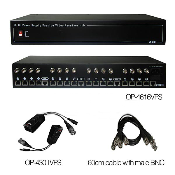 OP-4616VPS 16CH Power Supply Passive Video Receiver Hub, 16 Channel Video/Power Balun