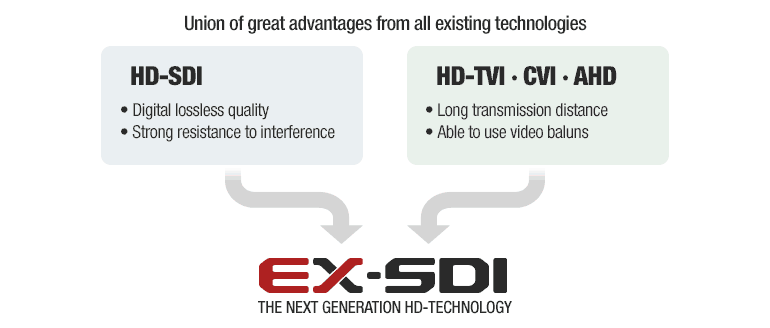 EX-SDI is built in mind of adopting 4K resolution to security. Thanks to the EX-SDI VLC feature, because of that it is possible to transmit 4K in realtime FPS over coaxial cable.